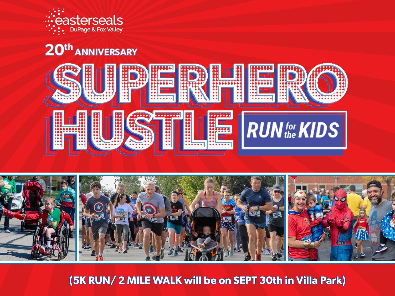 Easterseals Dupage and Fox Valley’s annual autumn 5k and fun run. Hosted at the Easterseals building in Villa Park this event includes hotdogs, live music, raffles, professional cosplayers, and the superhuman skills of the Jesse White Tumblers.